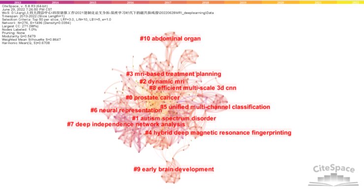 图6 深度学习时代下的磁共振成像领域共被引聚类分析(2019-2020)