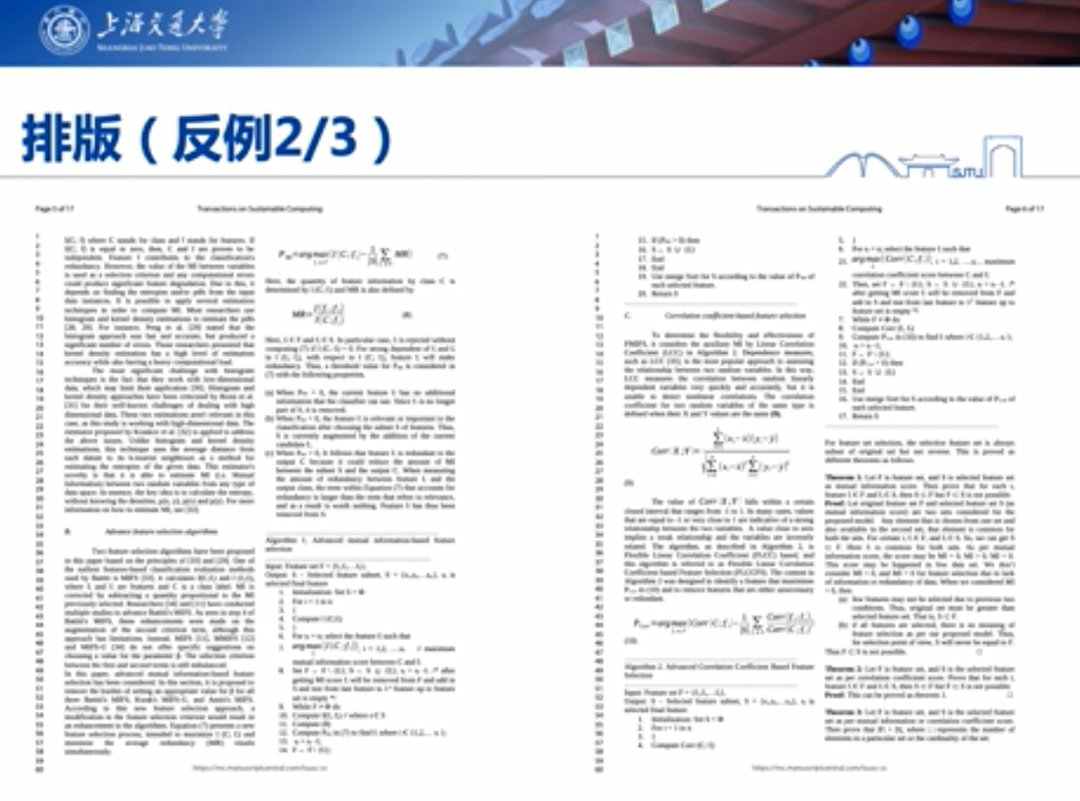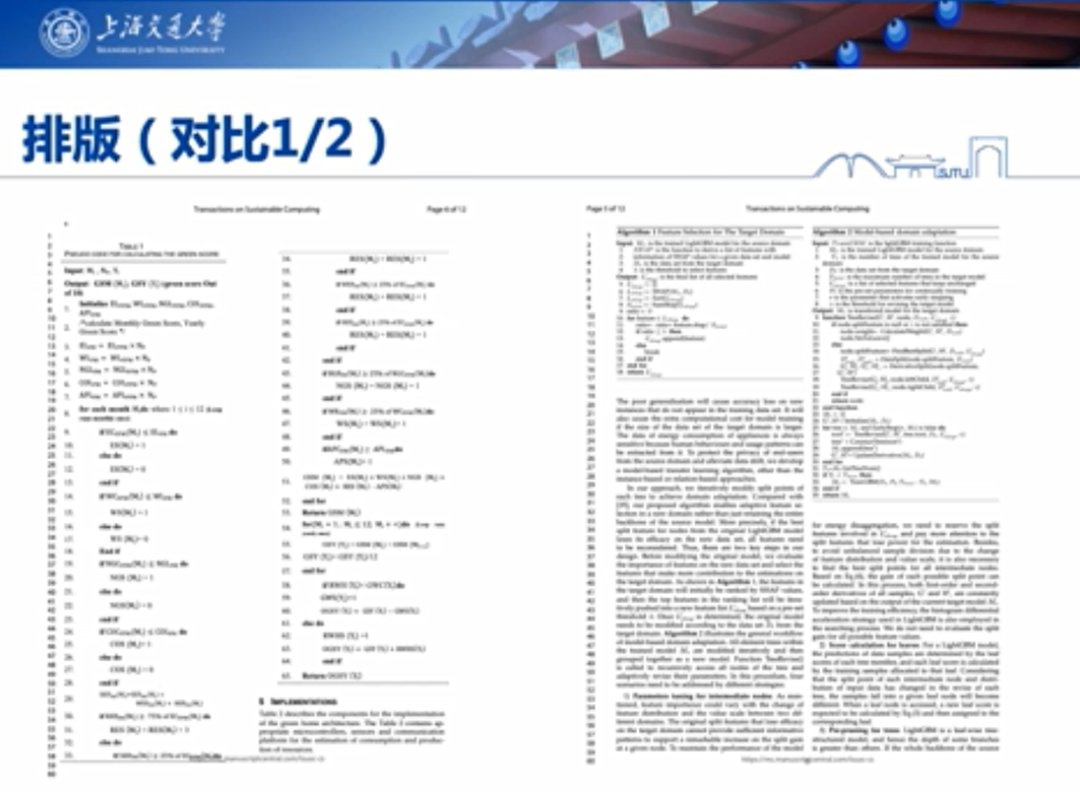 人是视觉动物,吃饭都讲究色香味俱全,上面两个图一个是算法排版对比,一个是公式排版对比,其所展现的论文谁优谁劣不言而喻。因此,排版非常重要。