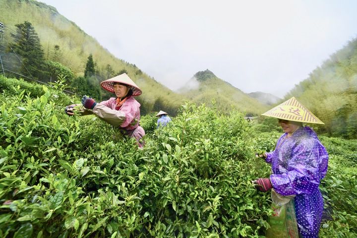 5月10日,采茶工人在福建省武夷山市桐木村茶园采茶。新华社记者姜克红摄